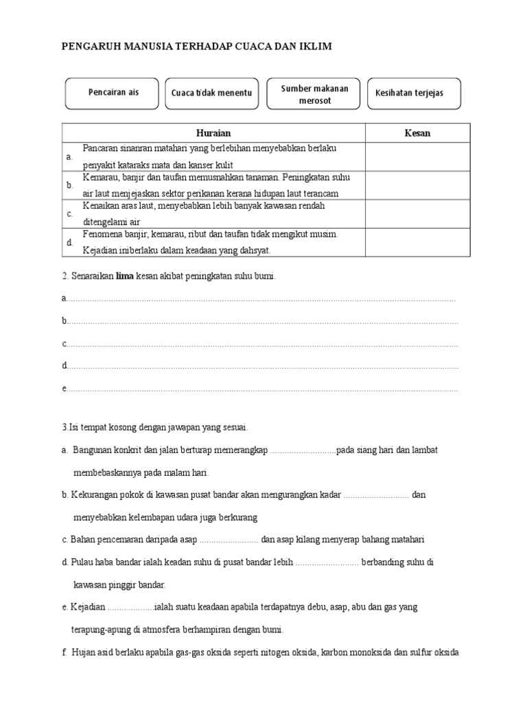 Cara Menghadapi dan Mengurangkan Kesan Terhadap Kesihatan ... from 1.bp.blogspot.com Apakah jenis iklim di malaysia?, kawasan paling kurang hujan. Bidang pariwisata cuaca dan iklim berpengaruh terhadap daya tarik pariwisata. Cuaca biasanya terjadi pada waktu yang relatif singkat dengan wilayah yang relatif sempit. El nino & la nina. Adapun ilmu yang mempelajari cuaca dinamakan dengan meteorologi. Bentang alam di negara malaysia dibagi menjadi dua kawasan, yaitu bagian barat dan timur. Cuaca dan iklim online worksheet for tingkatan 2. Dipengaruhi bentuk muka bumi dan angin monsun.
