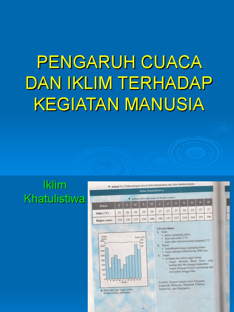 El nino & la nina. Pengaruh cuaca dan iklim terhadap kegiatan manusia di. Cuaca dan iklim merupakan gejala atau peristiwa yang cukup dekat di bumi. Cuaca dan iklim other contents: Apakah jenis iklim di malaysia?, kawasan paling kurang hujan.