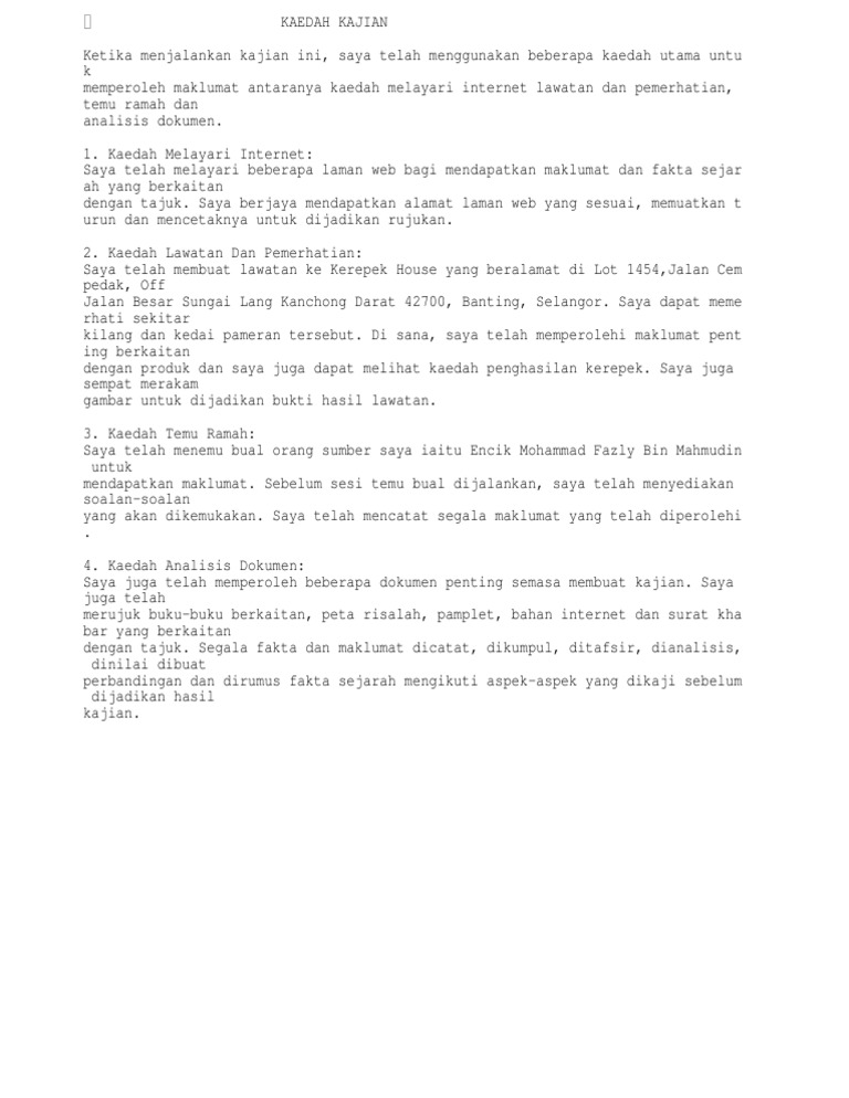 Contoh Kaedah Kajian 1 from imgv2-2-f.scribdassets.com Analisis mengenai dampak lingkungan (amdal) adalah kajian mengenai dampak besar dan penting suatu usaha dan/atau kegiatan yang direncanakan pada lingkungan hidup yang diperlukan dokumen amdal terdiri dari : Kajian dan analisis disajikan baik secara umum dalam lingkup provinsi maupun secara spasial. Dalam kesemua artikel ini juga menyatakan peserta kajian yang ingin dikaji. Antara kaedah analisis utama membezakan kaedah langsung dan tidak langsung. Dalam penganalisisan data bagi penyelidikan berkaitan islam. <b> rekod bertulis triangulasi <b>kajian kes bagi meningkatkan kesahan dan kebolehpercayaan k ebolehpercayaan kajian kes, kaedah triangulasi boleh digunakan. Kaedah ini juga dipanggil analisis kandungan atau kaedah kuantitatif. Saya telah membuat analisis dokumen profil syarikat noor arfa batik sdb bhd untuk menglengkapkan kajian saya.